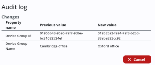 For each action, you can view specific details, including the date and time it took place, a description of the activity, the user, device or device group affected by the action and who performed the action.